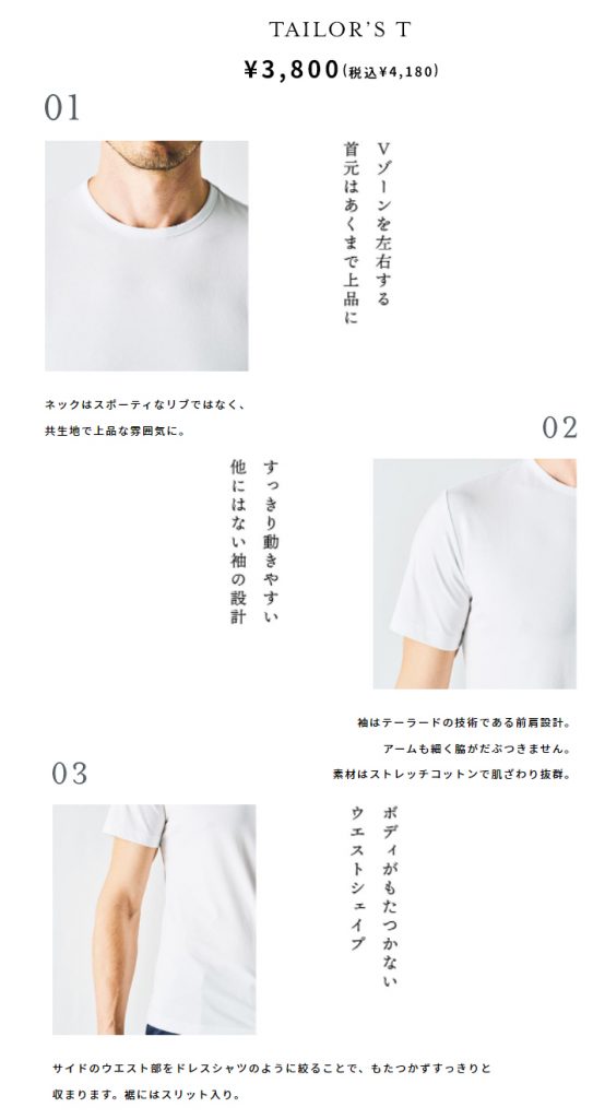 TAILOR’S Tは、ジャケットのインナー用と開発された商品です。