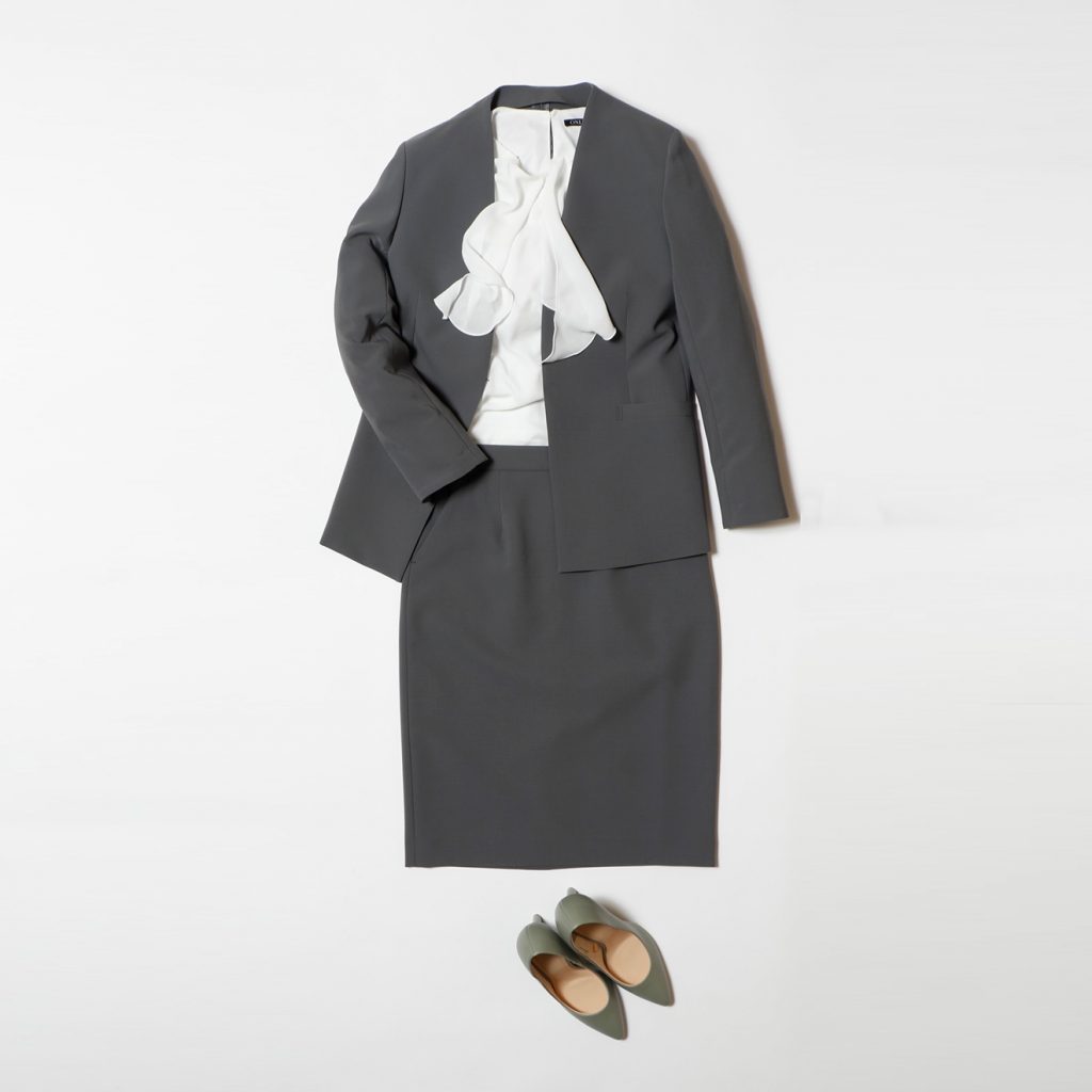 辛口になりすぎないように、インナーは華やかなデザインのあるカットソーをチョイス。