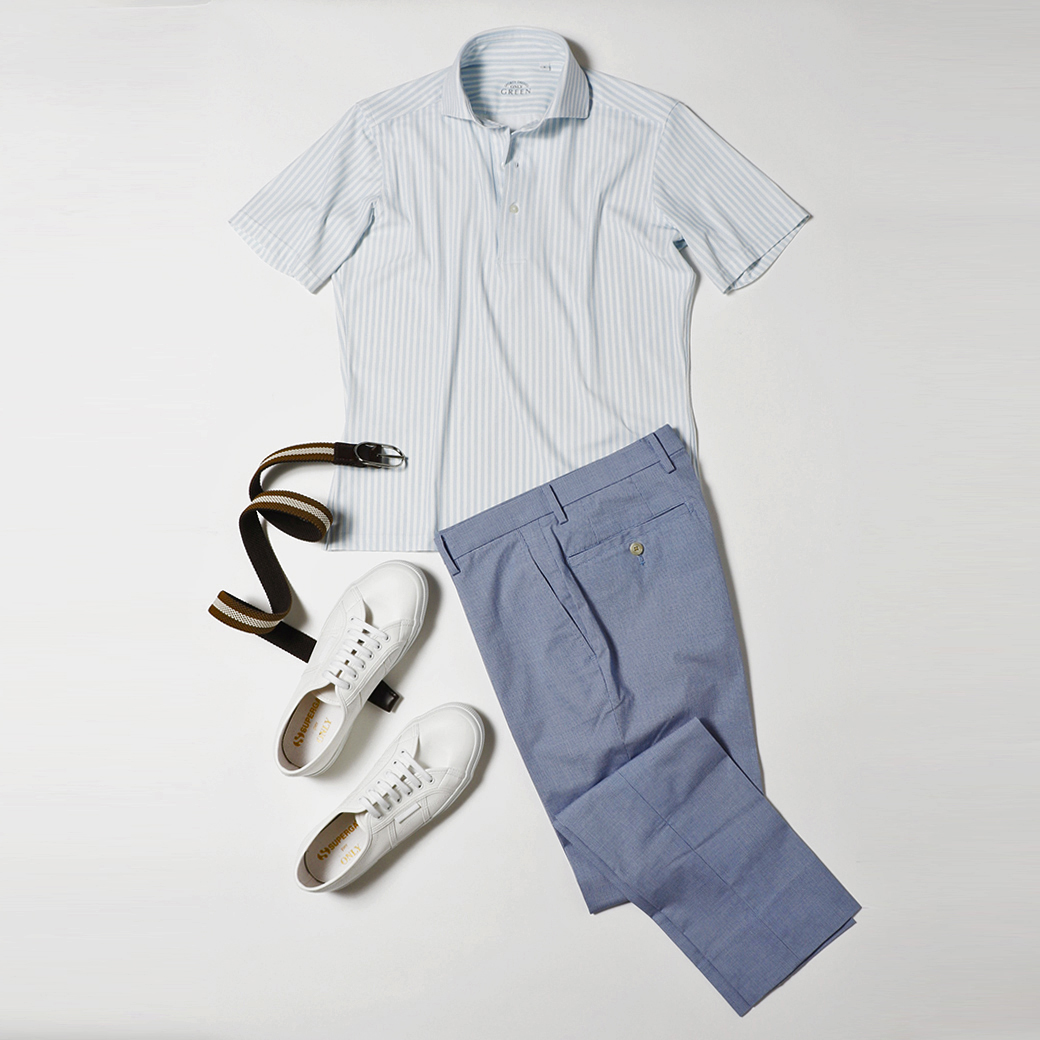 ドレスダウンしやすいこの季節に、新たな着こなしをおすすめ。