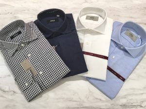 襟型はホリゾンタル・ボタンダウンの2種類ご用意しております。