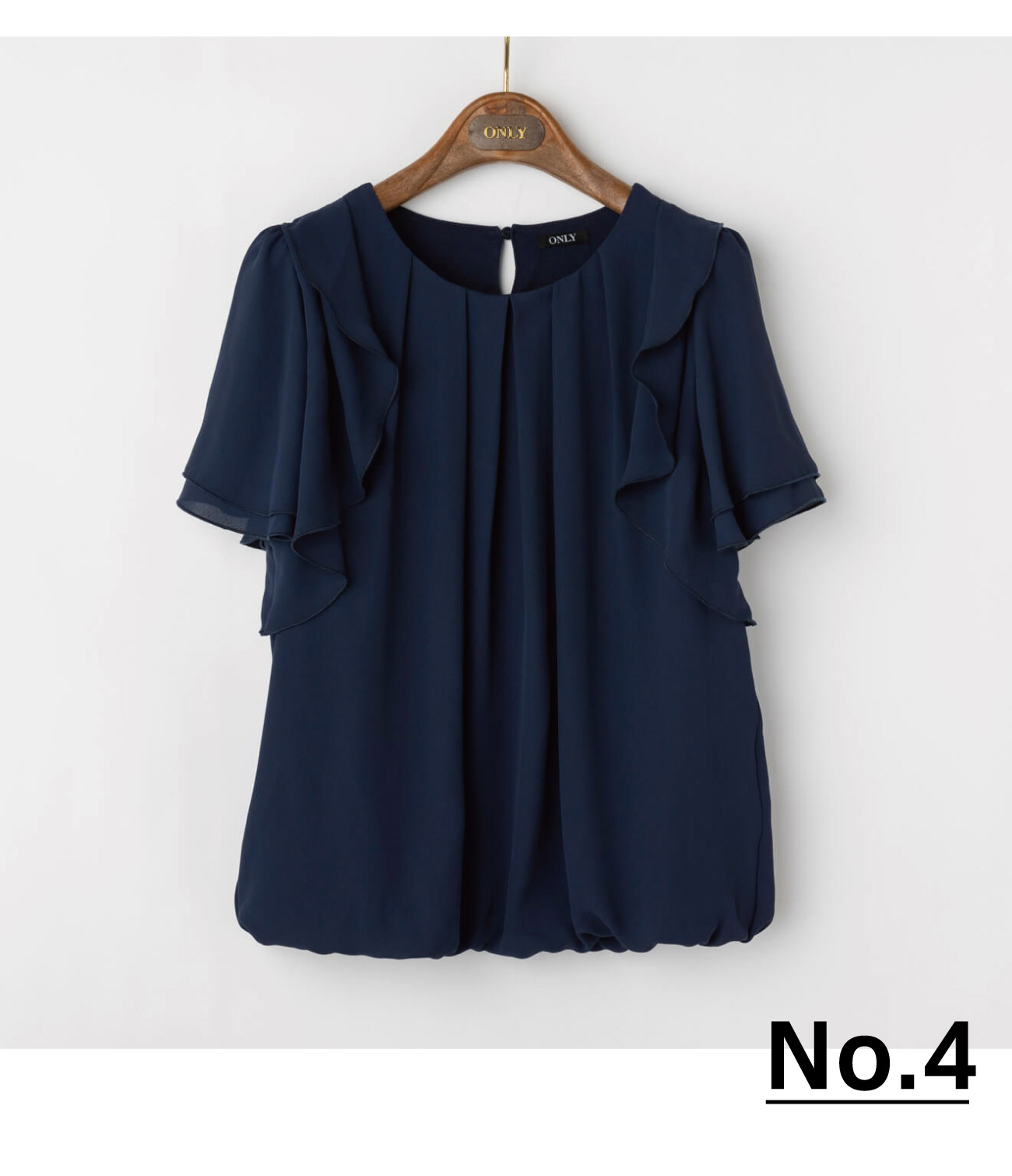 袖元のフリルで甘さを足しながら、ネイビーカラーで締めたトップス。
