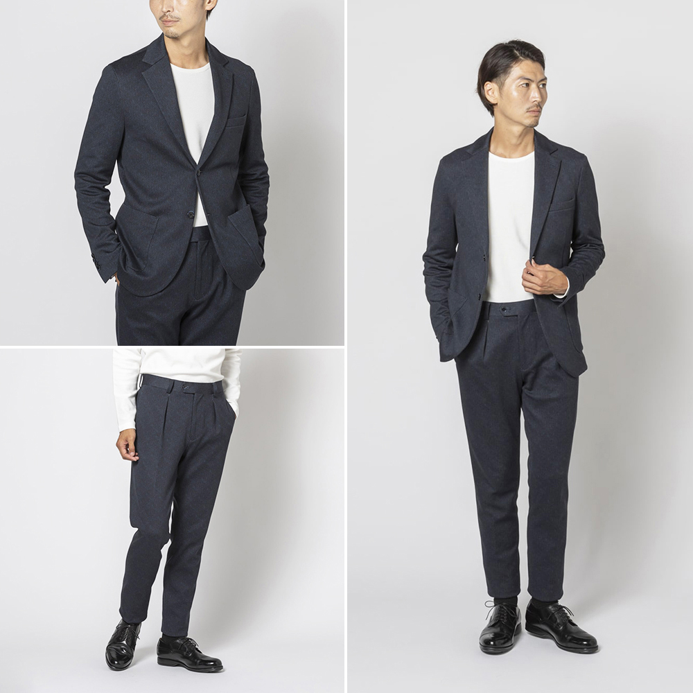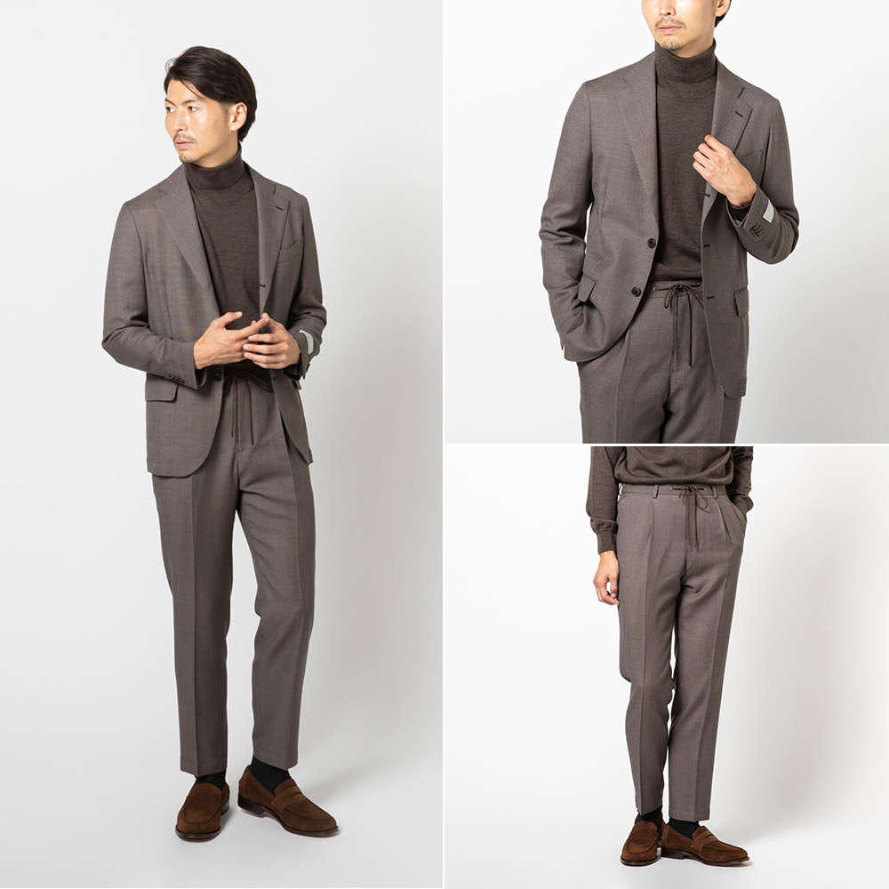 クラシカルな印象のバーズアイ生地を使用したセットアップ。