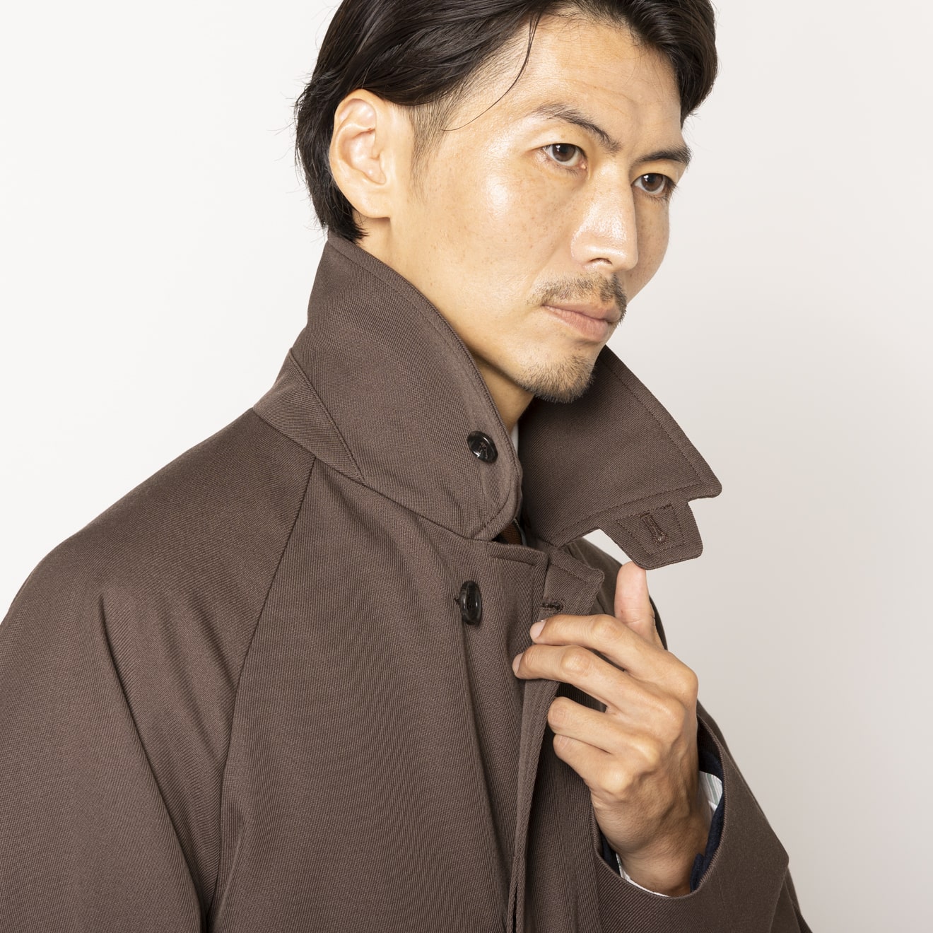綾目が綺麗な強撚ギャバジン素材を使用した、存在感のある1着。