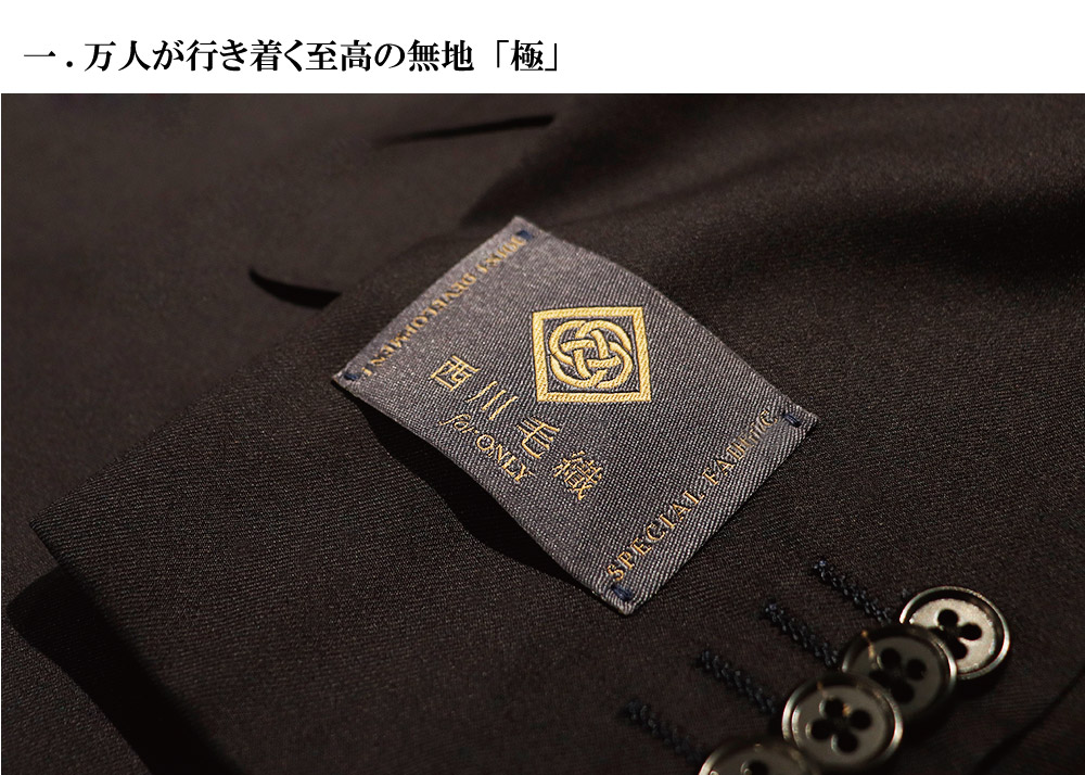 使用する生地は、尾州地区でトップの売上高を誇る毛織物メーカー「西川毛織」と共同開発した「極」。