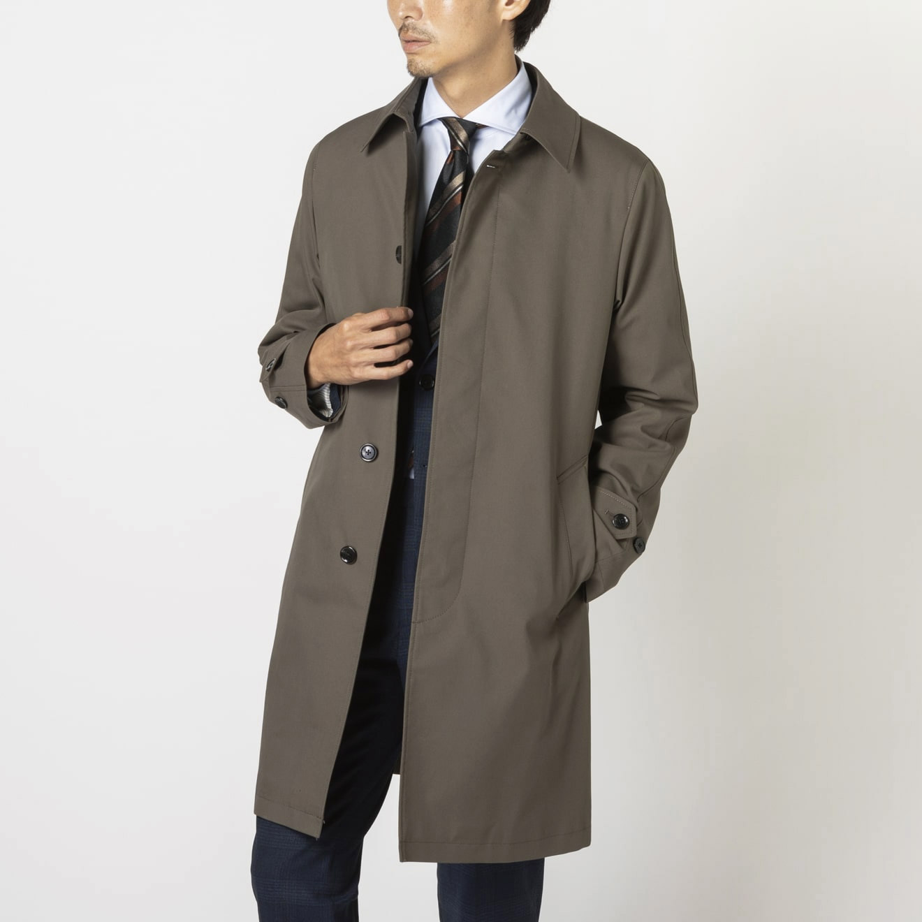 綾目が綺麗な強撚ギャバジン素材を使用することで、存在感のある1着に仕上がっております。