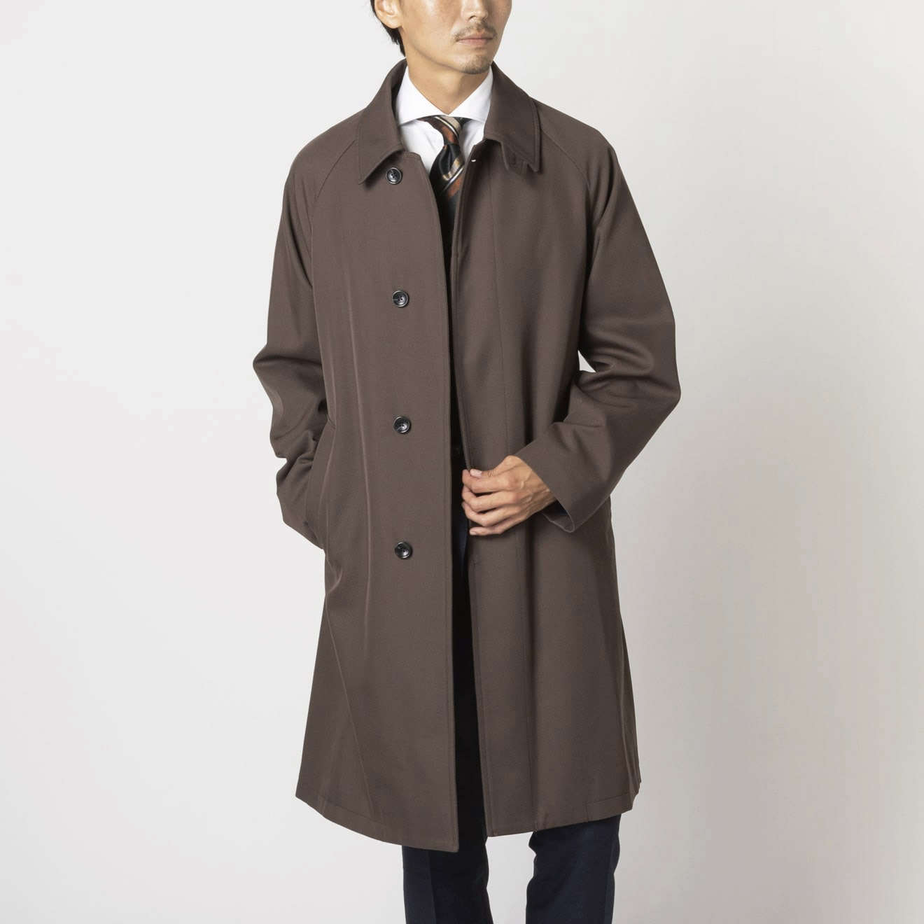 スーツ工場で生産することで、肩回りの副資材を省いた丸く柔らかい仕立てにし、軽さを備えたコートに仕上げました。