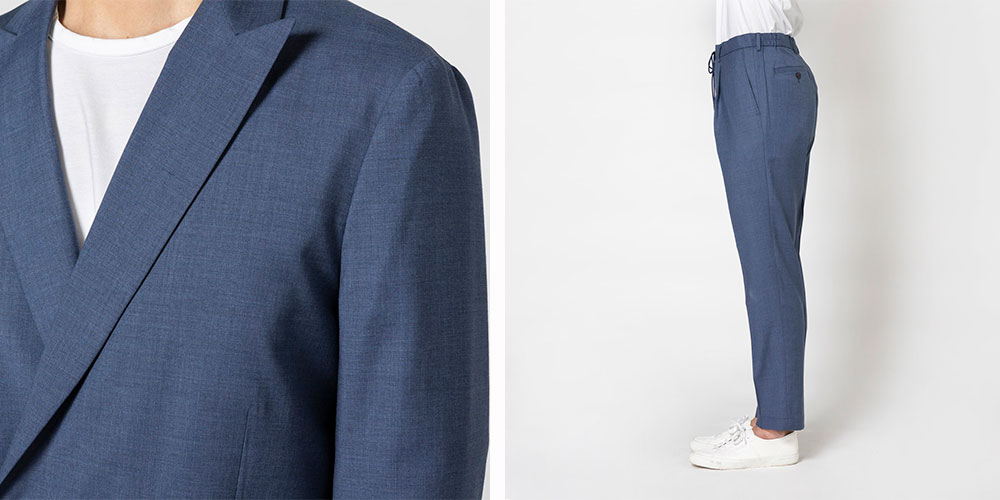 パンツのシルエットもテーパードを緩やかにして都会的に改良し、サンプルを何度も試作し出来上がりました。