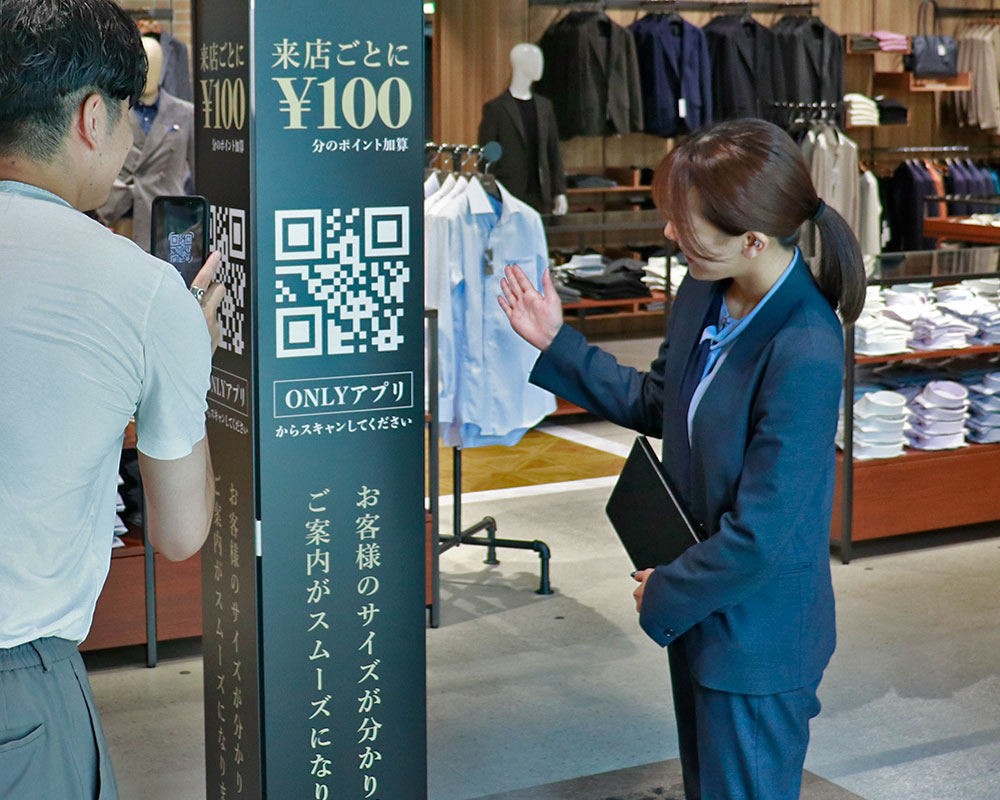 「まずは入口にある来店ポイントパネルのQRコードを、