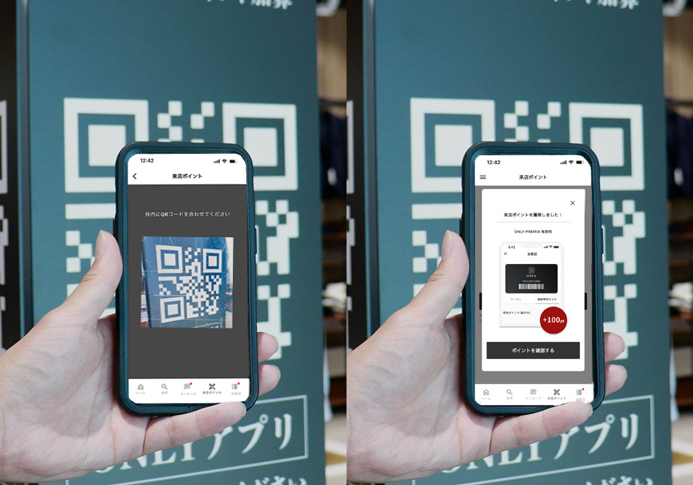 オンリー公式アプリのサービスのひとつである「来店ポイント」