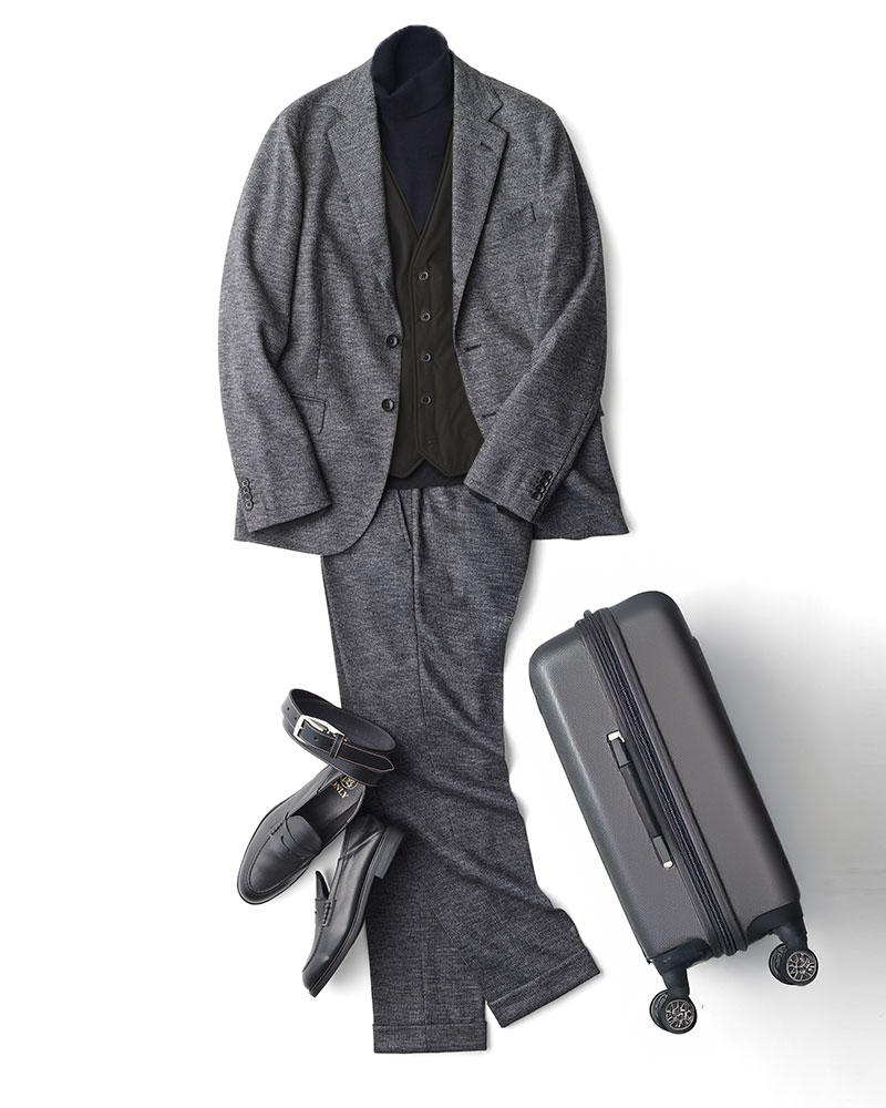 シワにもなりにくく、出張やデスクワークの日に最適。冬のオフィスカジュアルに迷った日でもインナーをニットにするだけでOK。