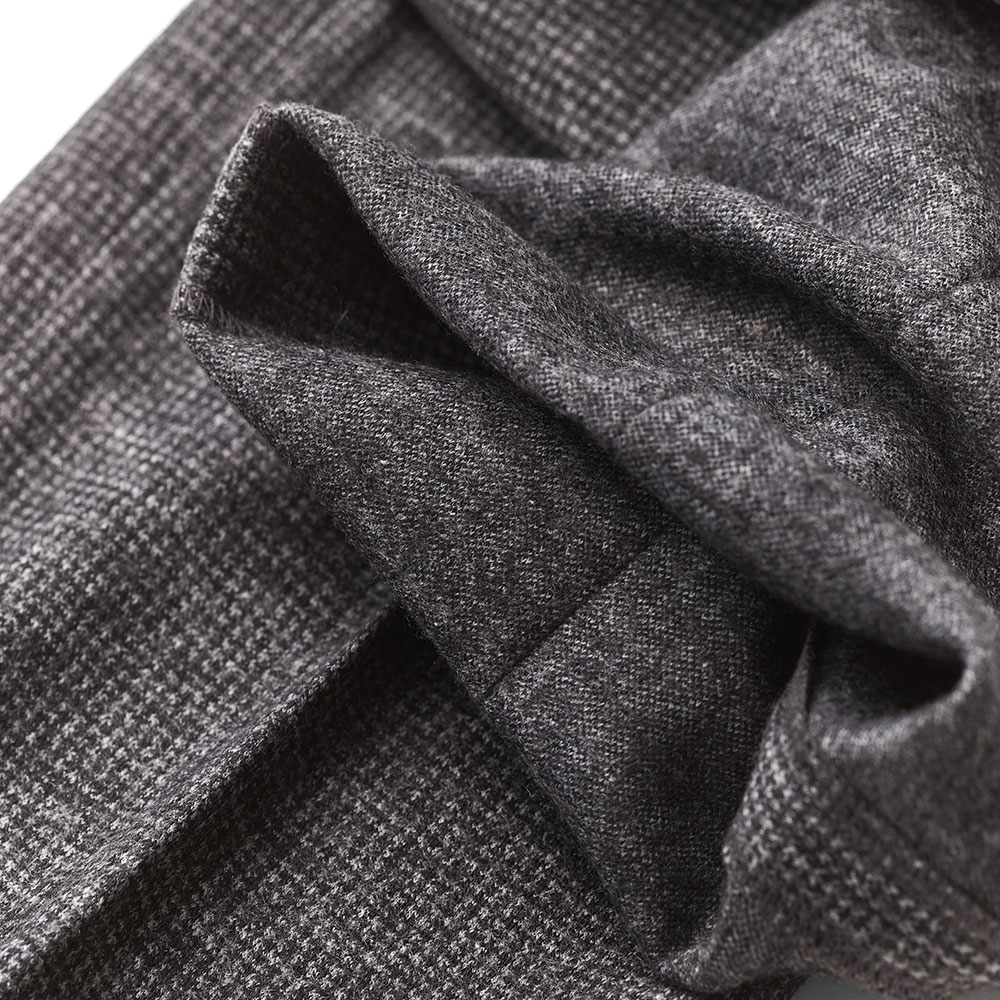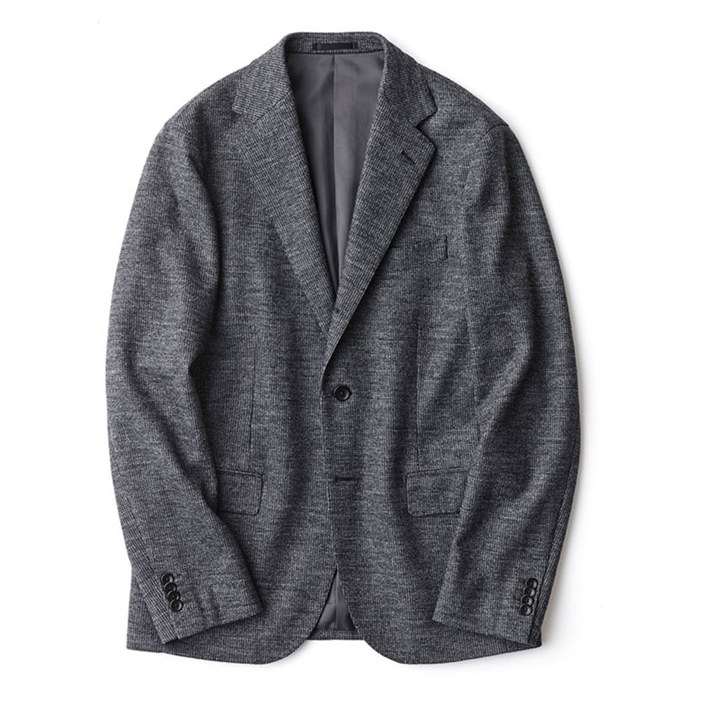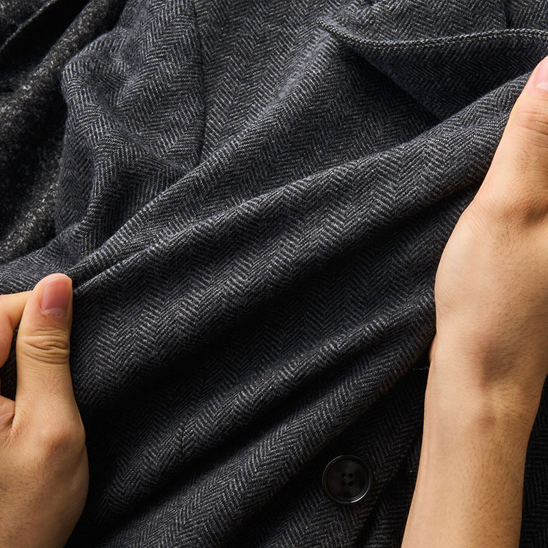 メリノジャージー最大の特徴は、ツイードやフランネルのような紡毛素材のウール生地とまったく同じ見た目なのに、ストレッチ性抜群のジャージー生地です。