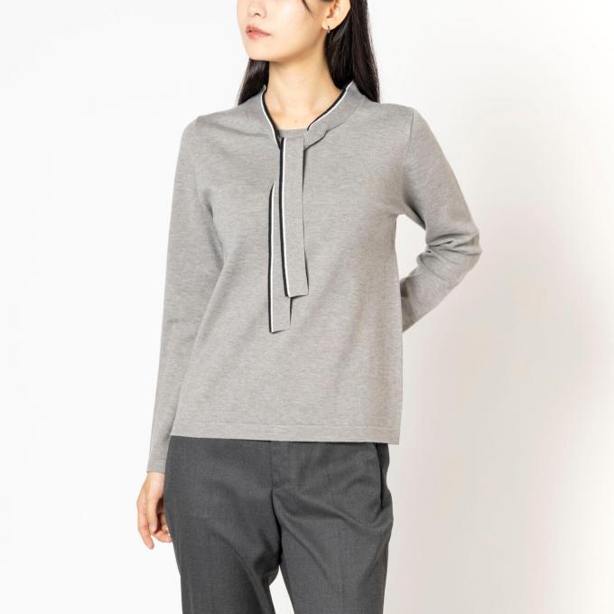 女らしさは控えめに。品だけを残したボウタイニット。