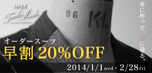オーダースーツ MEN& WOMEN 早割 20%OFF【期間限定2月28日まで】
