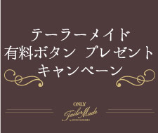 日頃よりONLY各店をご愛顧いただき、誠にありがとうございます。 この度、テーラーメイドのオプションブックの刷新を記念し、 期間限定で有料ボタンプレゼントキャンペーンを開催いたします。 この機会に、テーラーメイドにて、スーツまたはジャケットをご注文いただいくと、 通常1,000円~3,000円別途必要となるオプションのボタンをプレゼントいたします。 &nb...