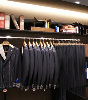 メンズの場合、イタリアのサイズの考え方を日本人向けに再編した84ものサイズマトリックスの中から、日本人の体型をほぼ網羅する17サイズの先縫いしたゲージ服を用意。またウィメンズでは3号から21号の10サイズのゲージ服を揃え、ゲージ服を着て採寸するという、最適な的確かつすばやいフィッティングを実現しました。これによりスーツの美しいシルエットを崩すことなく、自分のサイズに合ったベストバランススーツを作ることが可能となりました。