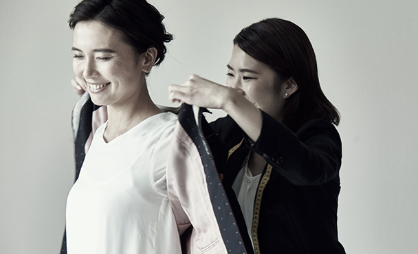 店舗の専門スタッフがお客様のサイズを採寸し、コーディネートのアドバイスをさせていただきます。また、お届け後、3ヶ月間は無料でのお直し、返品をお受けいたします。