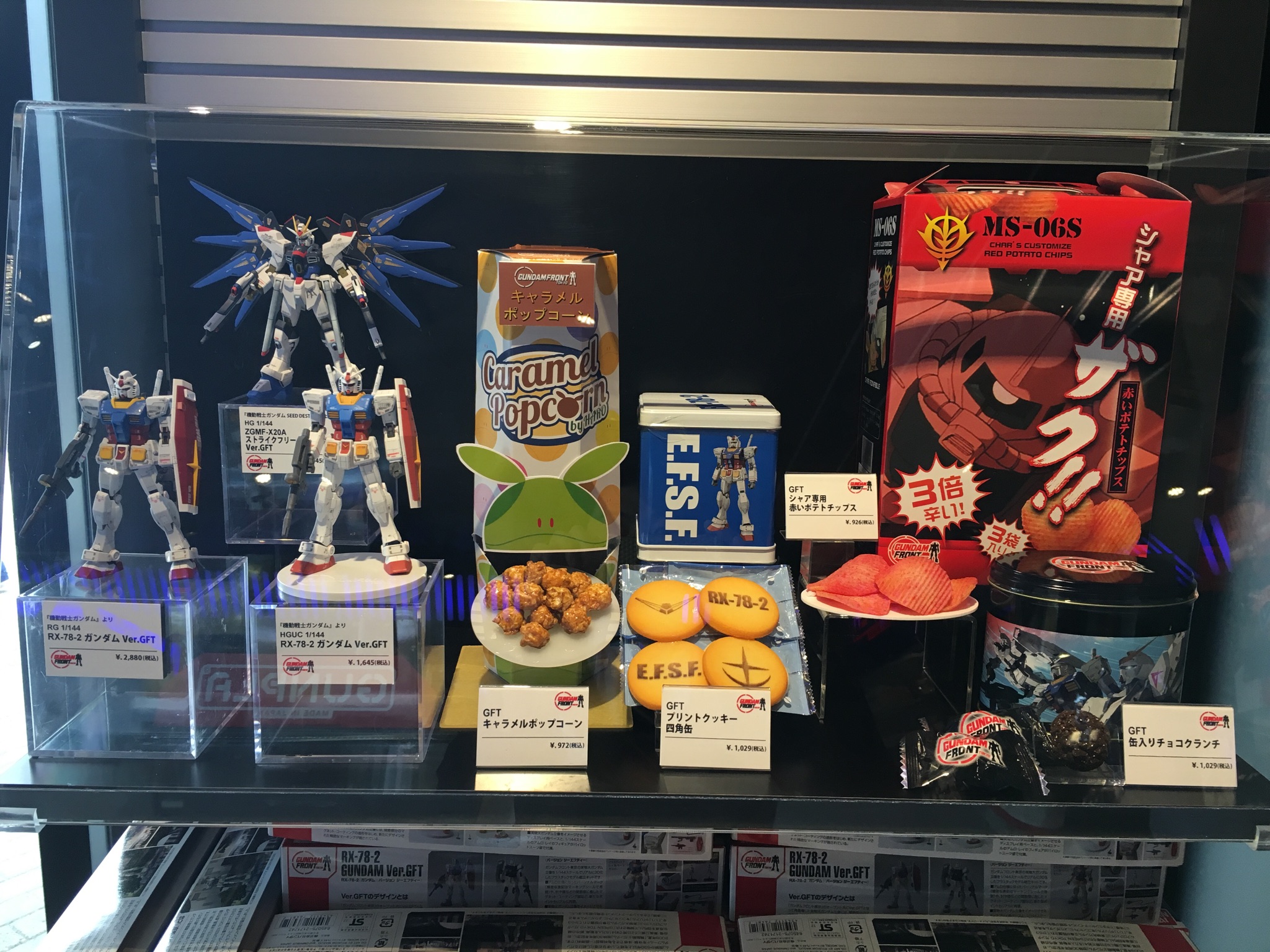 店内にはプラモデルはもちろんのこと、ガンダム関連のお菓子やコースター、湯呑みまで、ここでしか買えない商品が並んでおり、見ているだけでも癒されます。