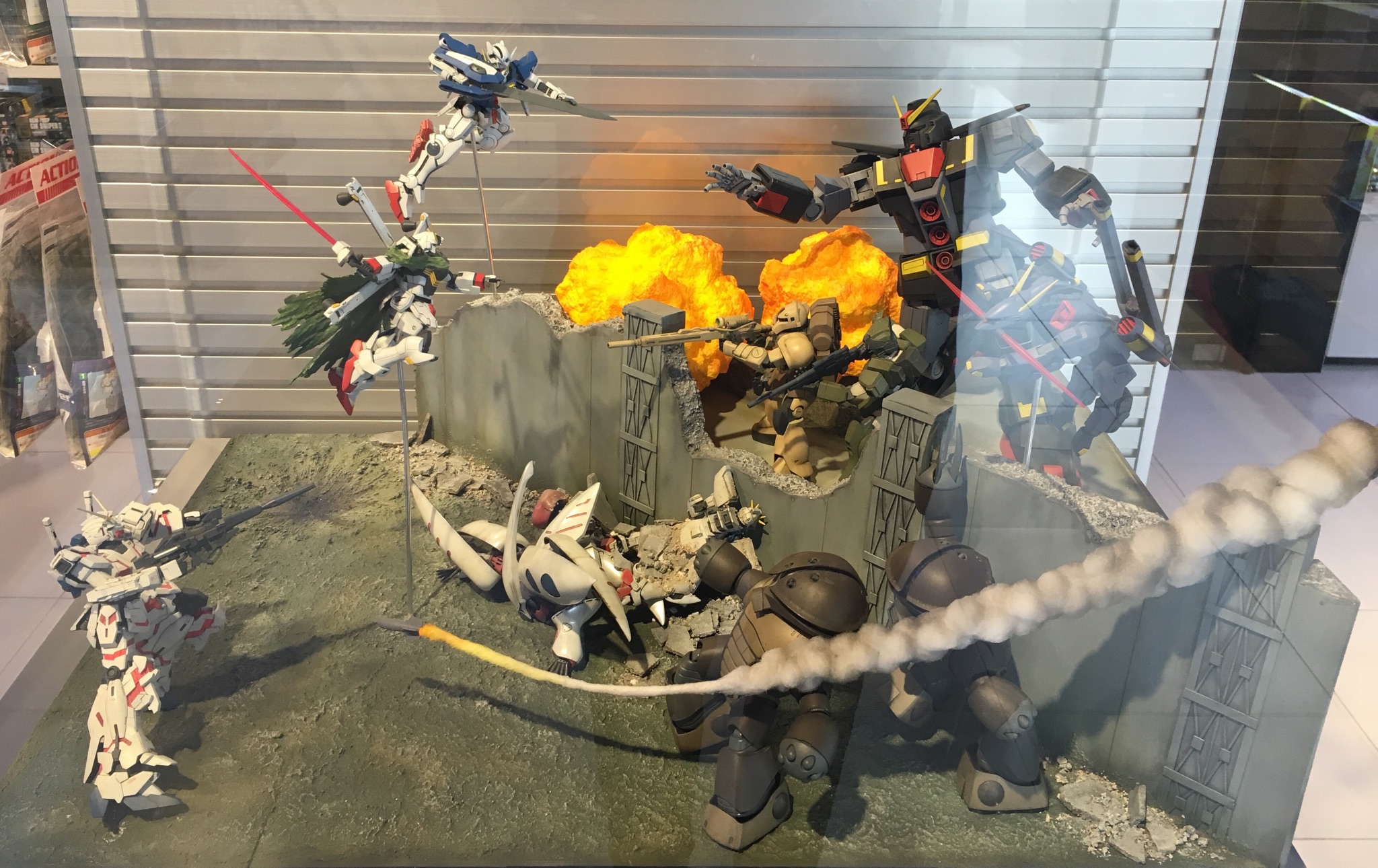 他にもガンプラ完成見本や本格的なジオラマも展示、なぜかイベント限定品なども販売されてます。