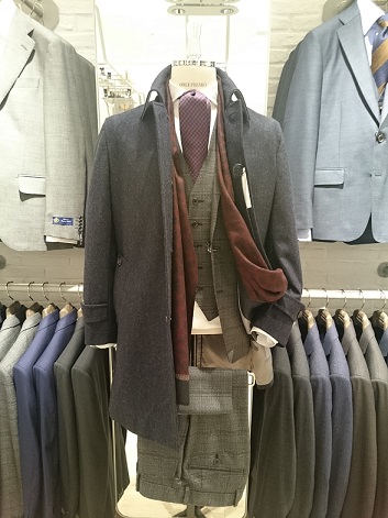 また、こちらのスーツに是非合わせて頂きたいのがステンカラーのウールコート!