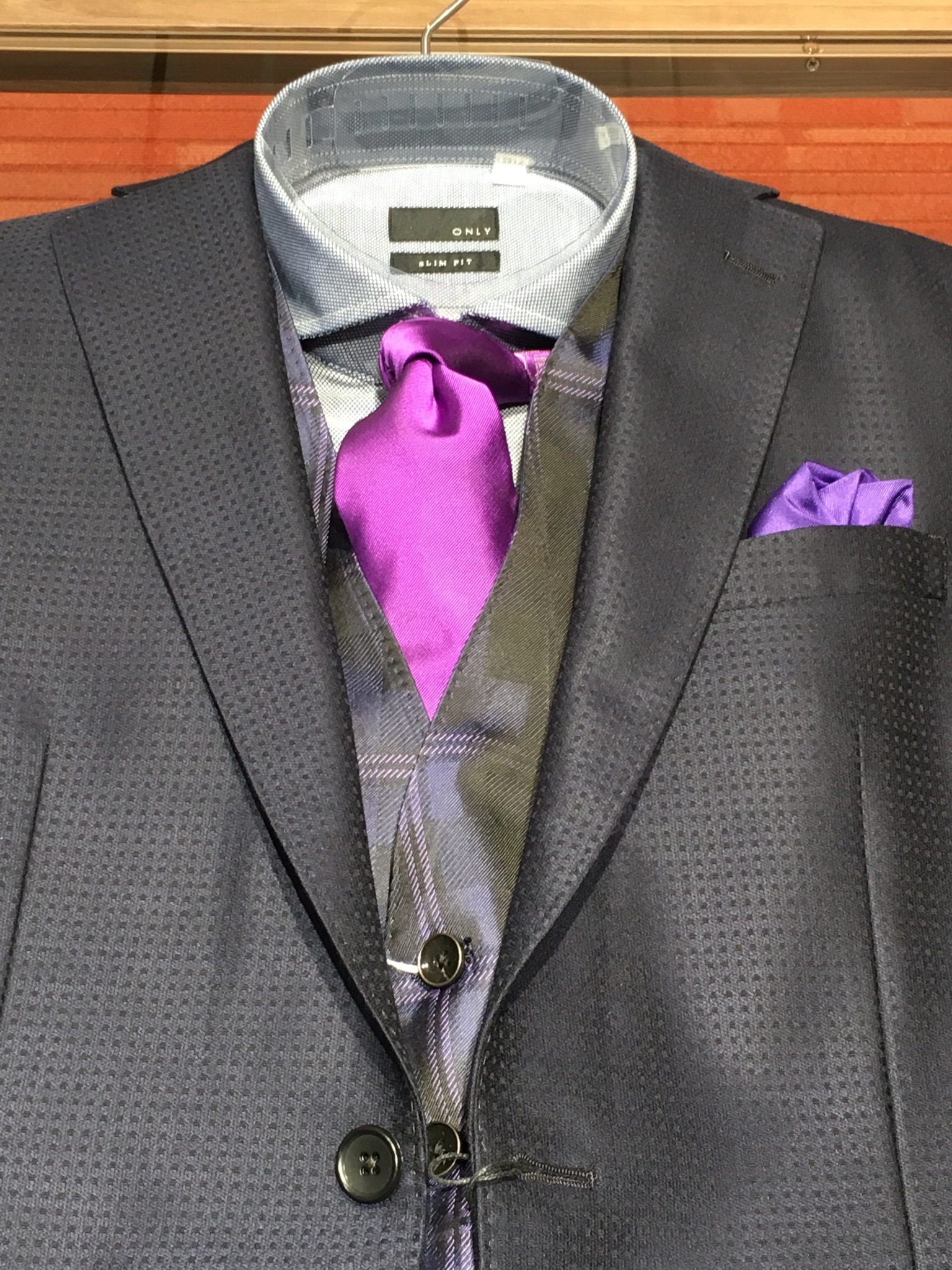 ONLY神戸三宮店では、この光沢と色柄のネイビースーツが28,000円でご購入いただけます!