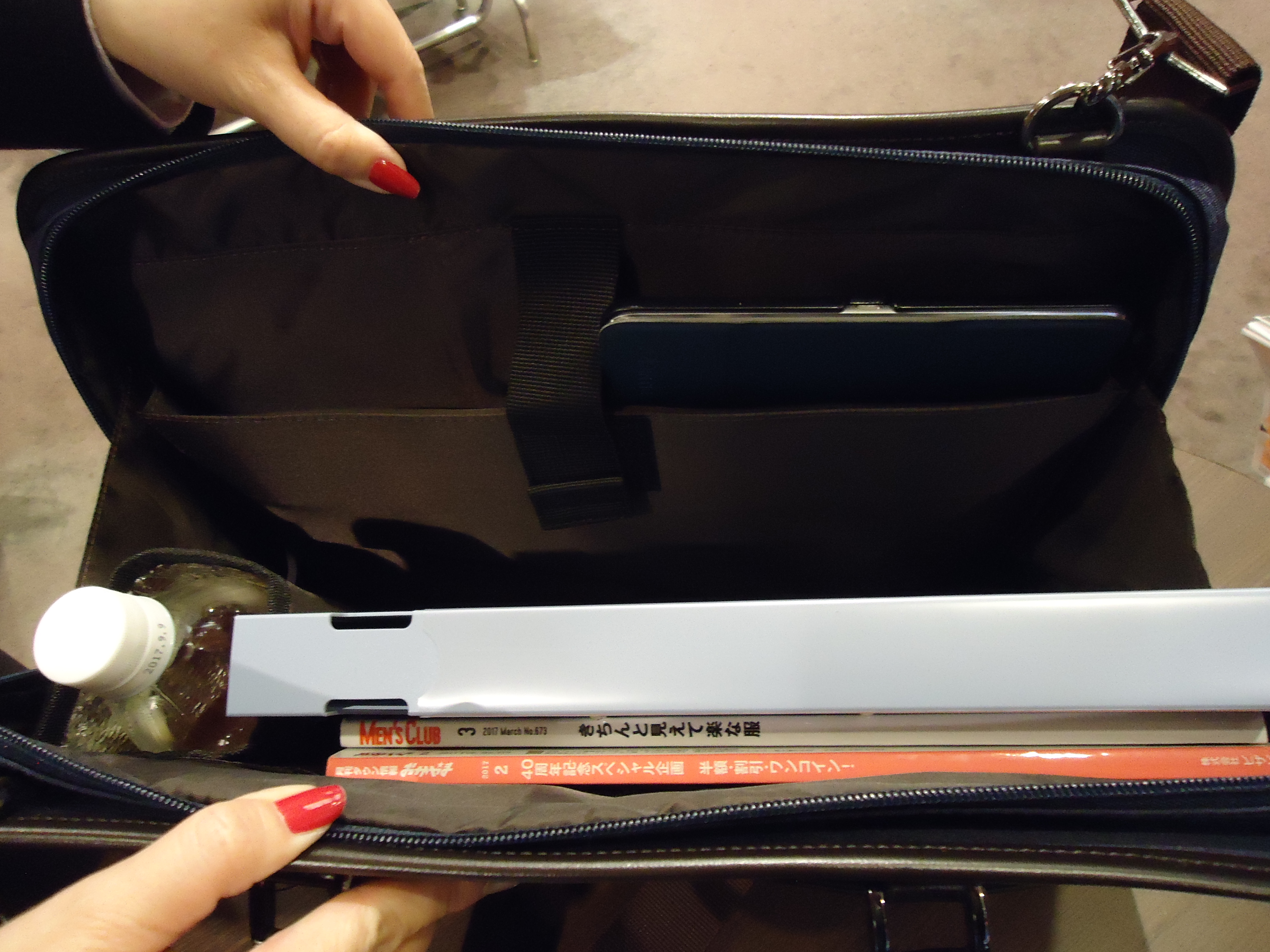 分厚いファイルや縦型お弁当箱が入る仕様になっております。
