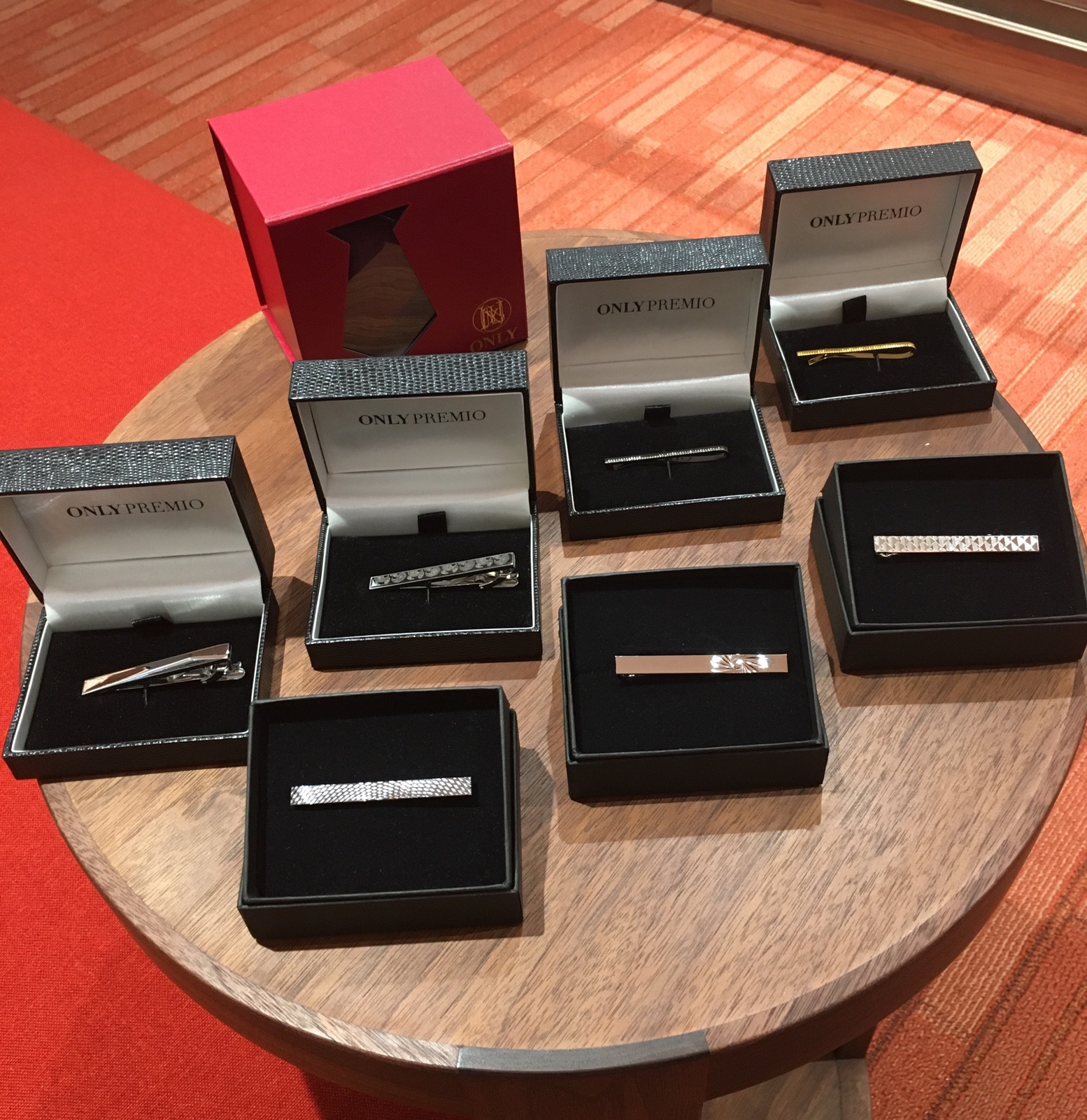 パッと見たらシンプルなんですが、よく見ると「ひねり」が効いていて洒落ているものを選ぶと良いですよ。 ちなみにリアルにひねってあるネクタイピンも置いてます。(笑)