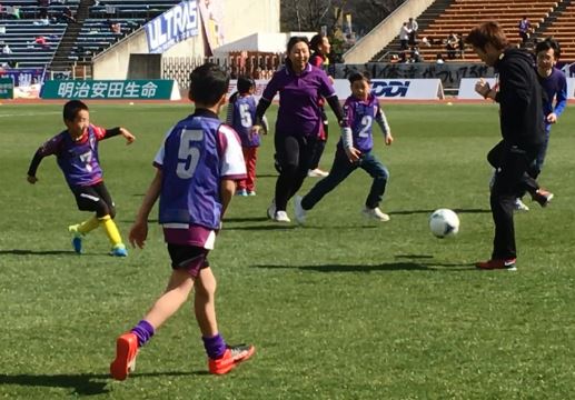 開幕前では子供たちと京都サンガF.C.の選手が一緒にサッカーを楽しむイベントがあり