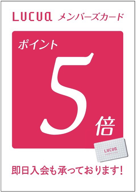 【ルクアカード5倍ポイントキャンペーンのお知らせ】ルクアイーレ店