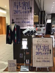 7月8月に秋冬のスーツをオーダーしていただくと、なんと生地代から20%OFF!