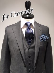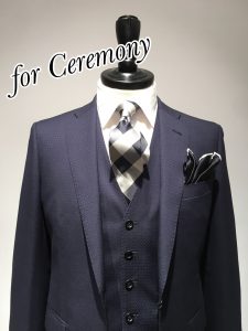 ビジネスからセレモニーまで対応できるベスト付きのスーツは、
