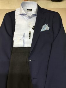 そんな「マンハッタンモデル」に何故か別の色のパンツが付属して入荷してきた時は、スタッフ間で頭を悩ませましたが、なんと、ディレクターズスーツのように着用する為だったんですね~。