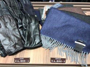 まずは、今の時期にコートと合わせてご用意して頂きたい「マフラー」と「手袋」をご紹介~♪