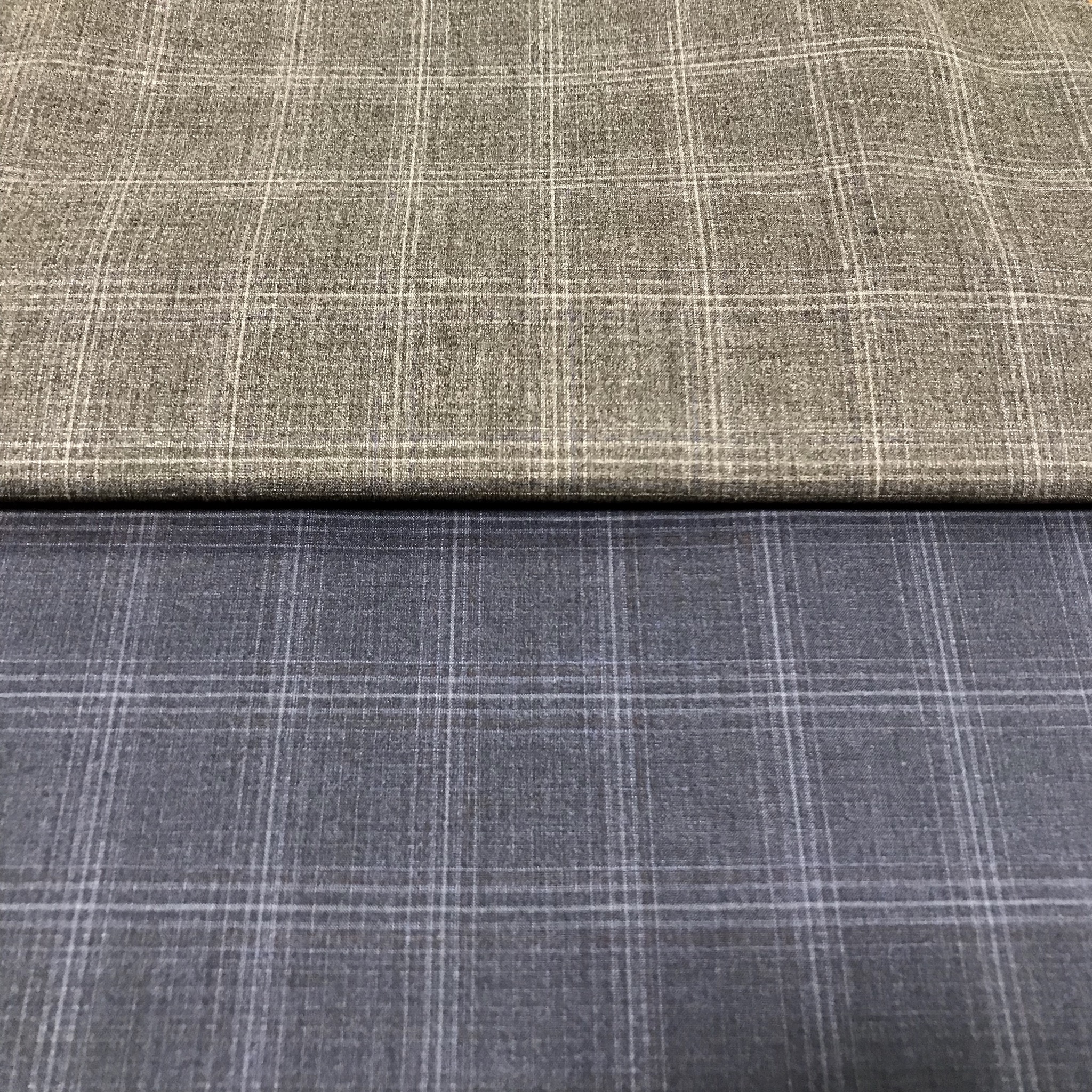 こちらの他にも今年は、濃いネイビー、表面感のある無地、柄無地に注目し新柄として、投入しております。ソリッドな見え方のオケージョン向け素材、主張しすぎないカラーを配したチェック柄など様々なシーンにあった豊富な柄のラインナップです。