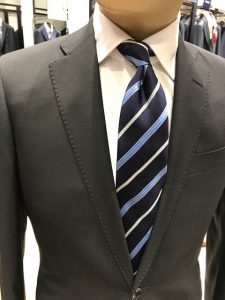 続いて、誠実な印象を与える「最強の無地」のネイビースーツ