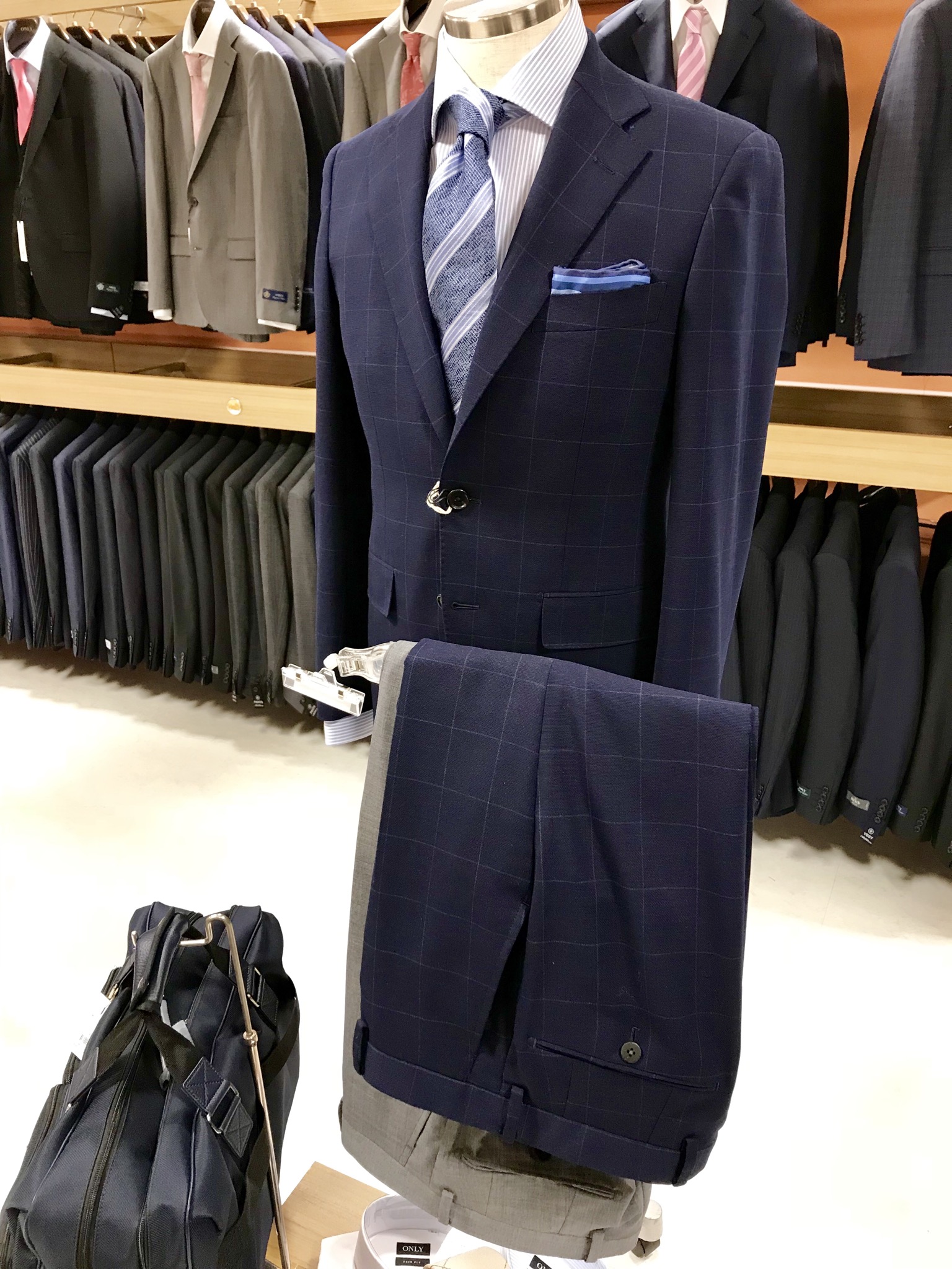 スーツと同じサイズ感のパンツが付いてくるなら安心ですね☆