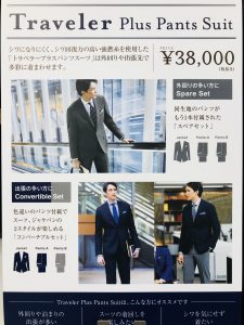 さらにジャケット、パンツ共にトラベラーシリーズの特徴である、『シワになりにくく、シワ戻りが良い』というところもオススメポイントです!