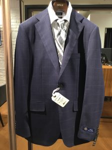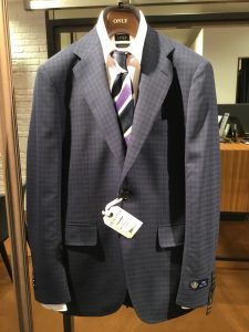 ミディアムなチェック柄がお洒落なスーツで、コットンパンツ等、様々なパンツに合わせやすく、オススメです!