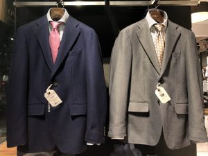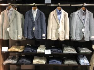 店頭ではこれらのジャケットを使ったコーディネートがのっているリーフレットも配布しております。