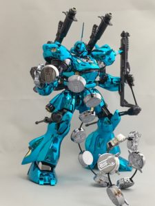通常の塗装では表現の難しいピカピカのオリジナルモビルスーツを簡単に製作できるというものですが、メッキが剥がれないように気を付けることと、ニッパーの切り跡はメッキコーティングされておりませんので、ガンダムマーカーでリタッチするところがポイントです。