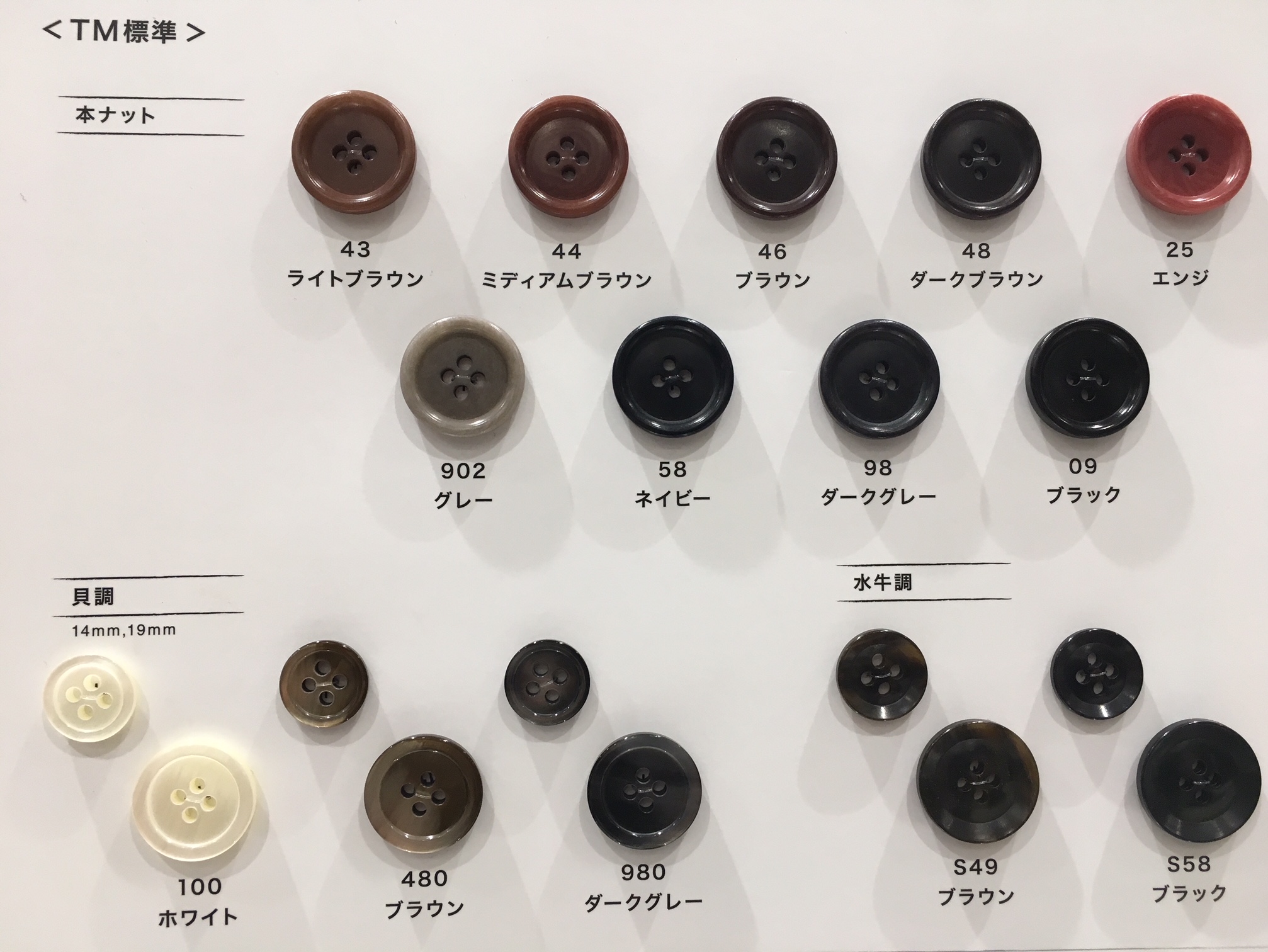 標準ボタン 本ナット・貝調・水牛調