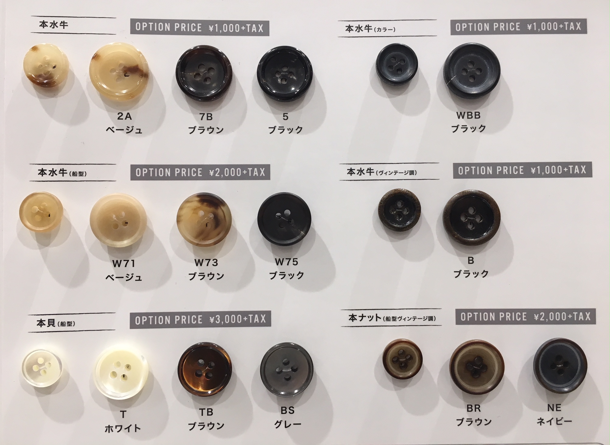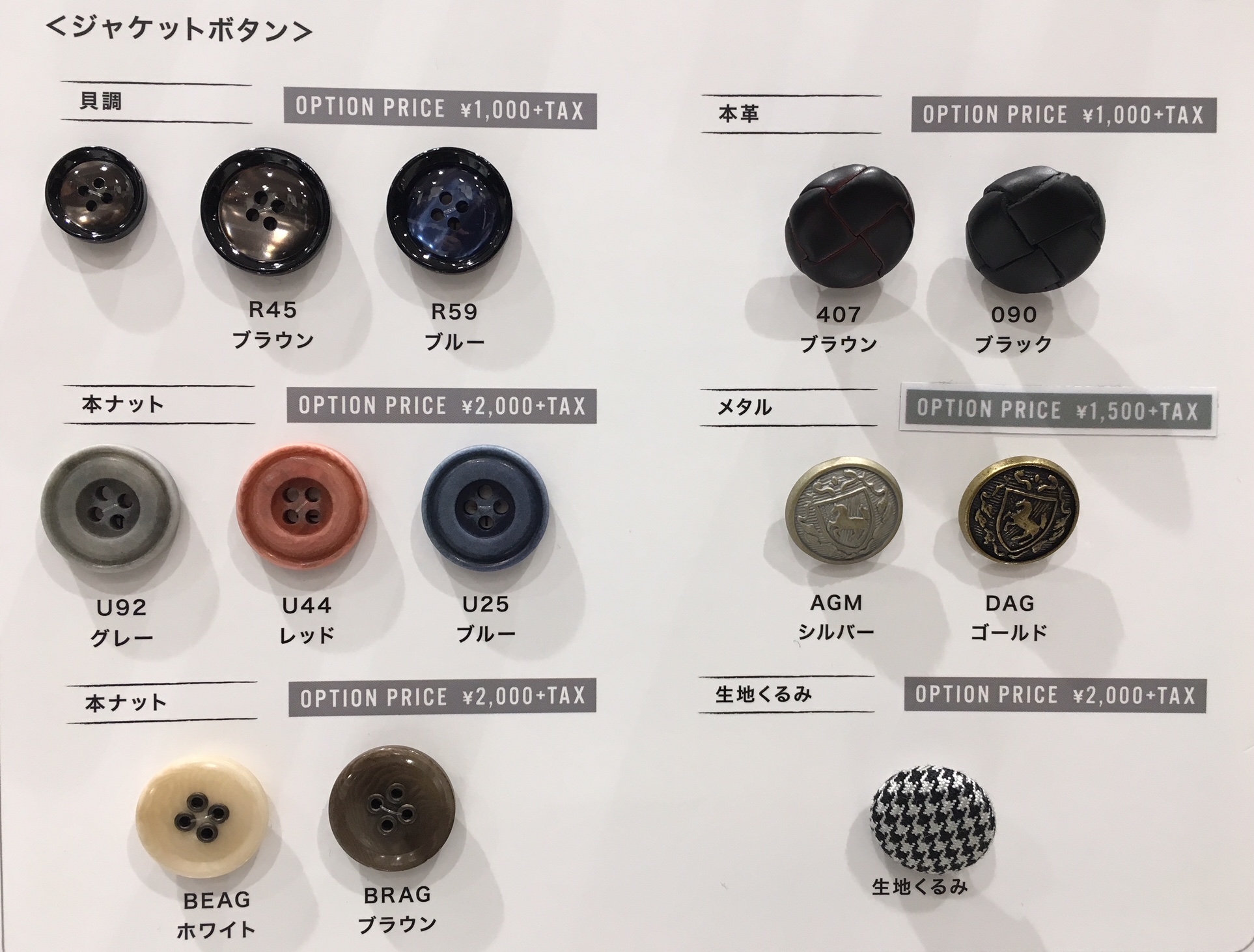 当店は、オプションの中から、ボタン全種類ご紹介します☆