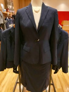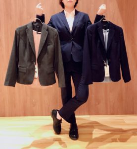 インナーに変化をつけて秋冬にはニット系の起毛素材を合わせるなど、通年着まわして頂けるおすすめのスーツです☆なんと言ってもシワになりにくいので扱いがしやすいので、色違いで揃える方もいらっしゃいます☆