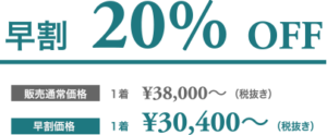 納期を約2ヶ月間頂戴し、20%OFFの価格でご注文いただけます。