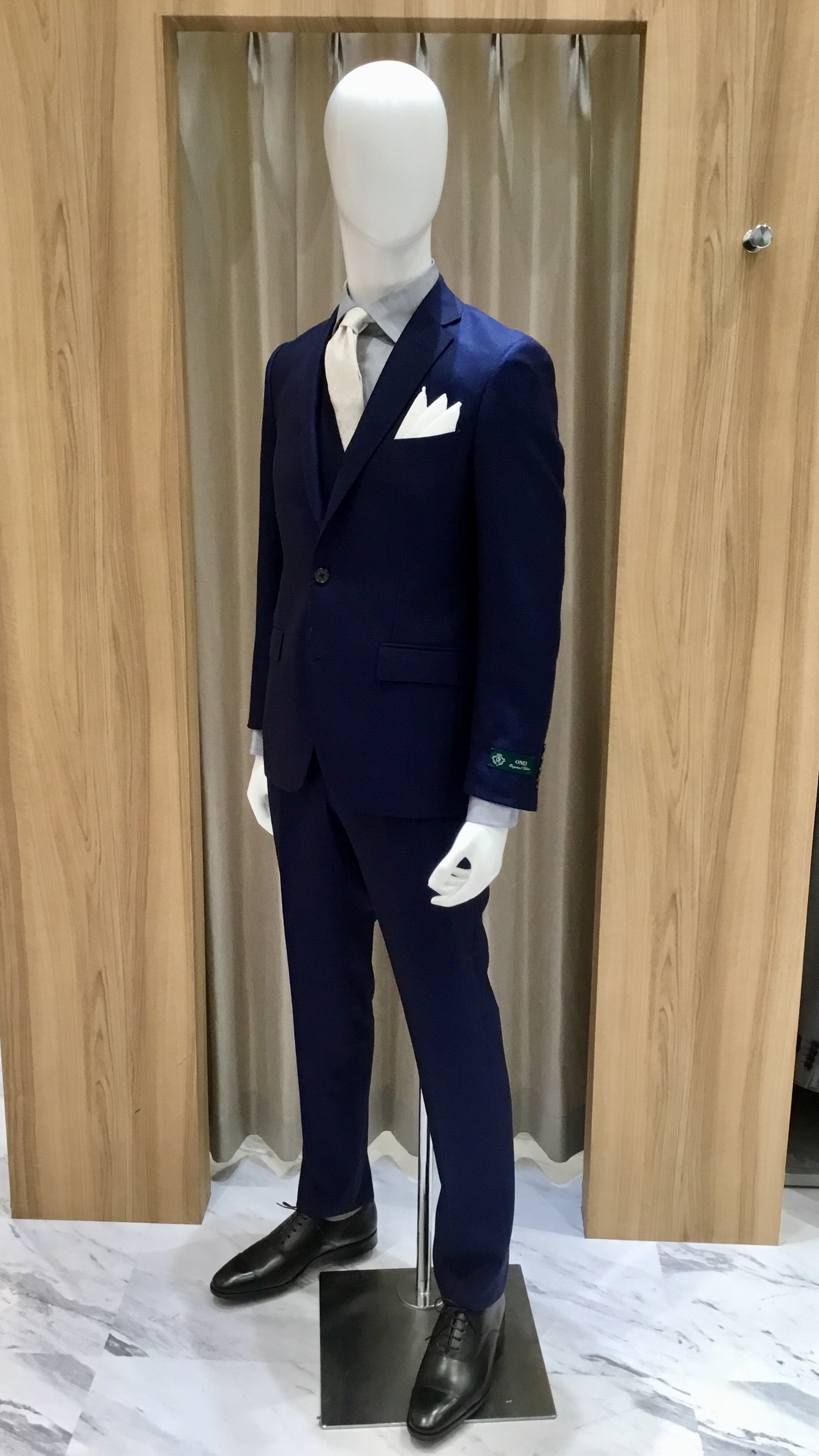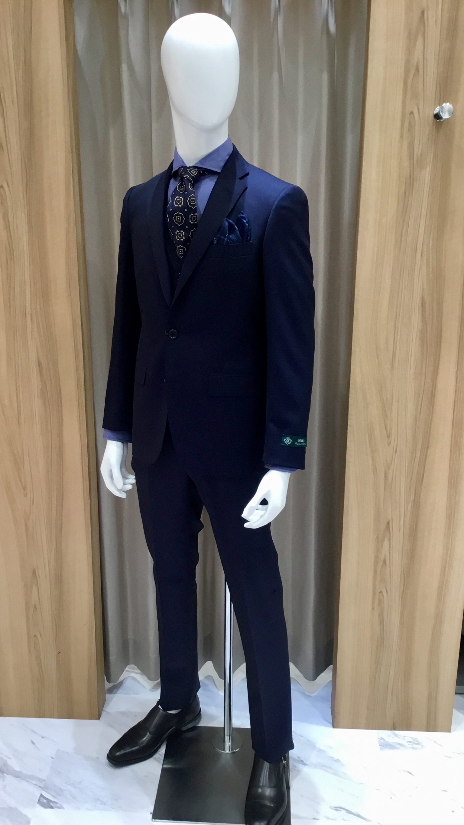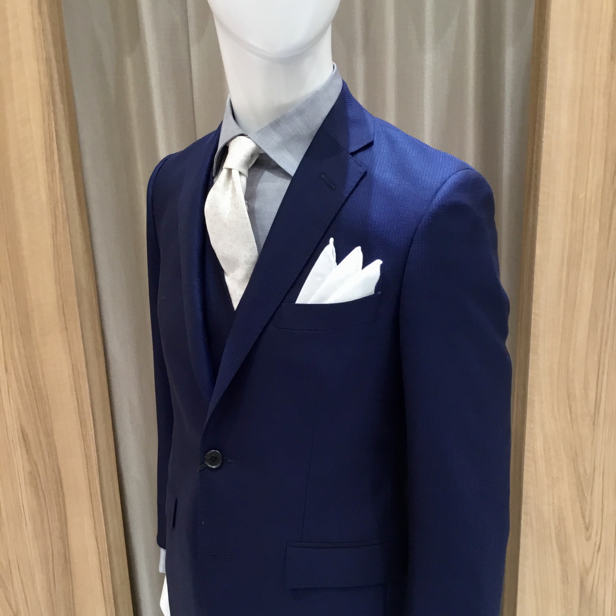 弊社『ONLY』のダブルネームの生地で仕立てた3ピーススーツです。