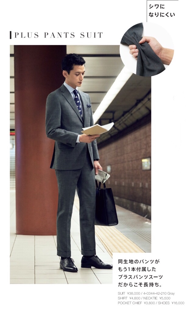同じ生地のパンツがもう1本付いた『 プラスパンツスーツ 』は防シワ機能がスゴイ☆