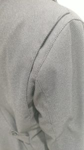 スーツの上からお召しになることを考えて作られているため、ショルダーラインにはタックが入り、肩や腕回りの窮屈さを解消しします。