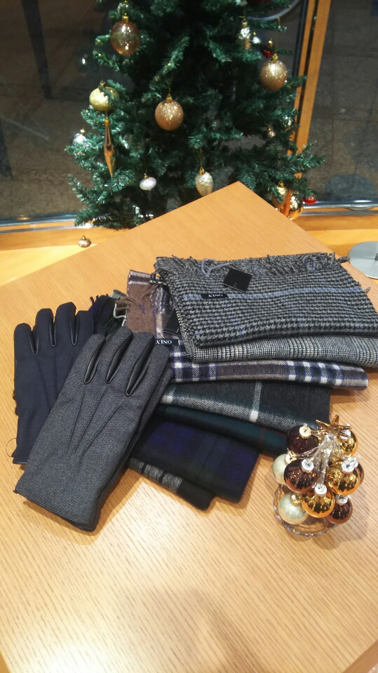 また、スーツ用のマフラーやグローブなどの冬小物も