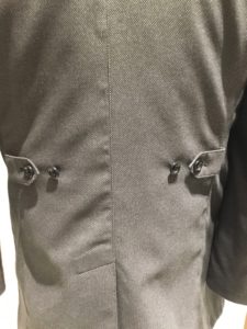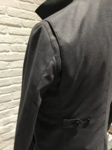 肩の後ろ側にアクションプリーツが施してあり、スーツの上から