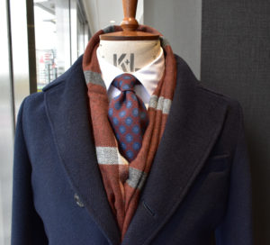 (マフラー)品番:4-0143-01-103 ブルー・オレンジ/チェック ¥7,800+Tax