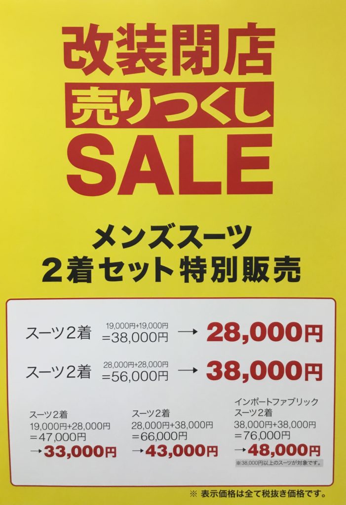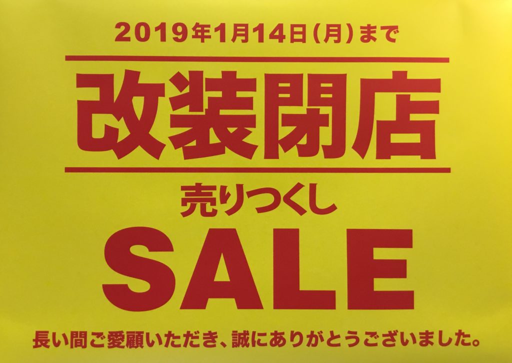 では今回は改装閉店セールの内容をご紹介させていただきます。